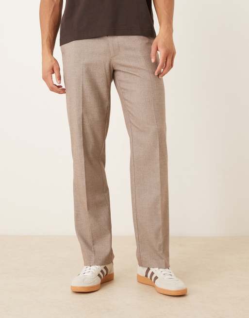 ASOS DESIGN - Pantalon droit habillé en tissu texturé - Marron