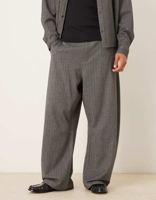 ASOS DESIGN - Pantalon élégant d'ensemble coupe barrel à chevrons - Anthracite