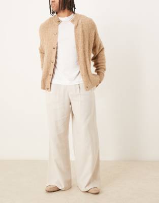 ASOS DESIGN - Pantalon élégant large en lin mélangé avec large taille - Neutre