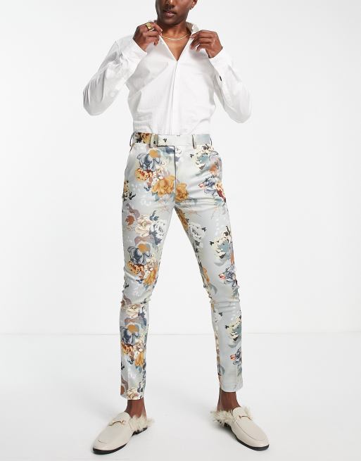 ASOS DESIGN - Pantalon élégant super skinny pour mariage avec imprimé floral - Taupe