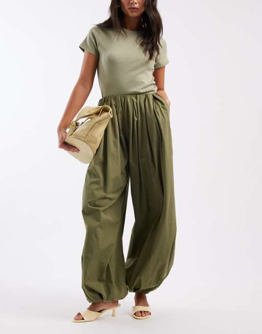 ASOS DESIGN - Pantalon en popeline à ourlet bouffant - Vert olive