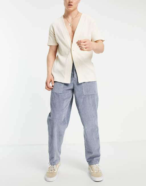 ASOS DESIGN - Pantalon en velours côtelé épais à coupe ballon - Gris
