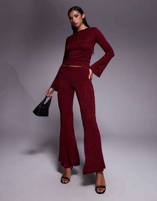 ASOS DESIGN - Pantalon évasé d'ensemble taille haute en tissu texturé - Bordeaux