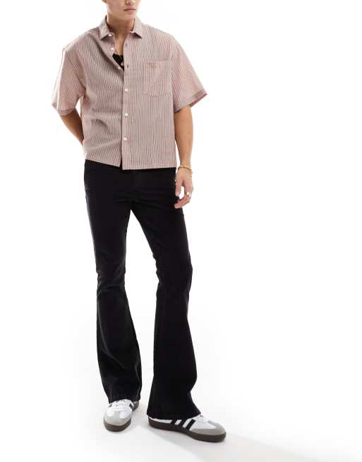 ASOS DESIGN - Pantalon évasé en velours côtelé - Noir