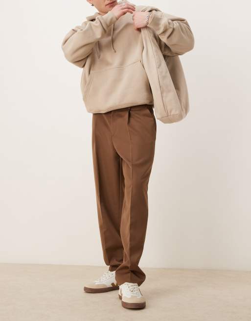 ASOS DESIGN - Pantalon fuselé oversize habillé avec pinces devant - Marron