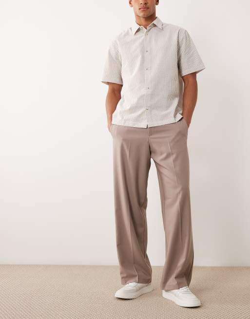 ASOS DESIGN - Pantalon habillé coupe ample confortable en sergé stretch avec taille élastique - Marron