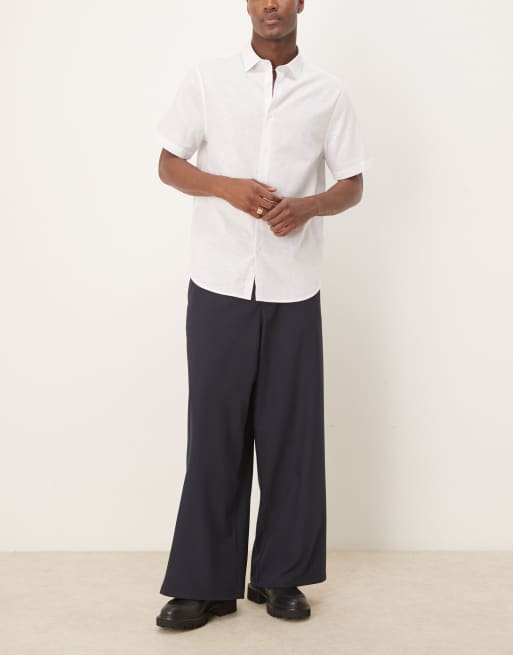 ASOS DESIGN - Pantalon habillé coupe ample en crépon - Bleu marine