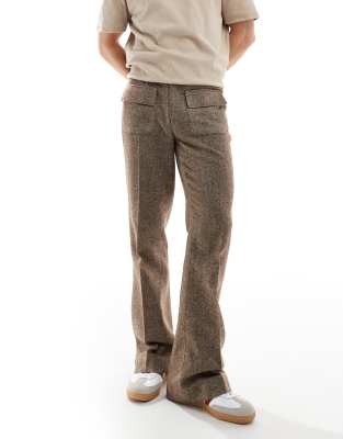 ASOS DESIGN - Pantalon habillé évasé en laine mélangée avec poches devant - Marron