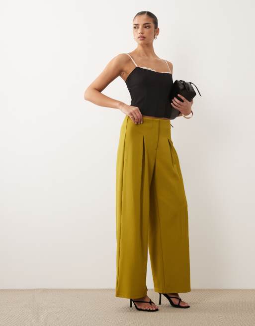 ASOS DESIGN - Pantalon habillé large d'ensemble fluide en sergé près du corps - Vert