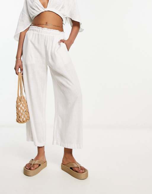 ASOS DESIGN - Pantalon jupe-culotte en lin - Blanc cassé