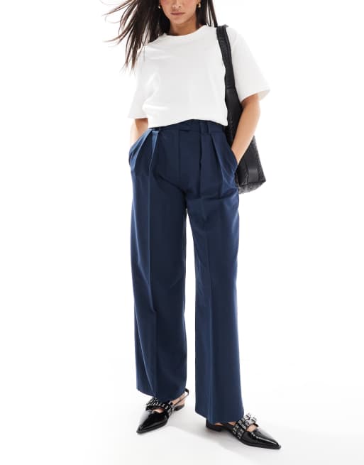 ASOS DESIGN - Pantalon large à pinces - Bleu marine