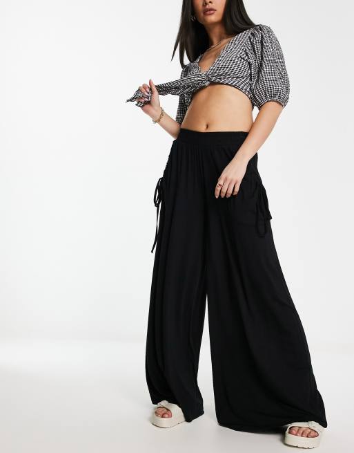 ASOS DESIGN - Pantalon large à taille et poches froncées - Noir