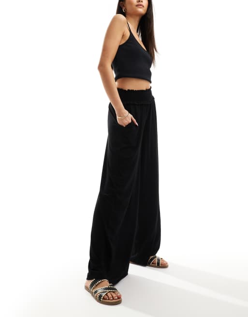 ASOS DESIGN - Pantalon large à taille froncée - Noir