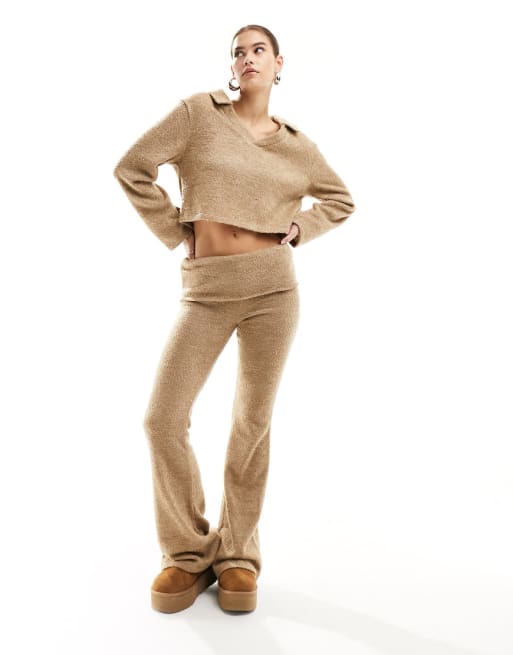 ASOS DESIGN - Pantalon large d'ensemble en bouclé avec rabat à la taille - Écru