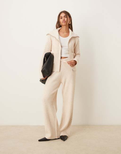 ASOS DESIGN - Pantalon large d'ensemble en maille avec coutures latérales torsadées - Crème