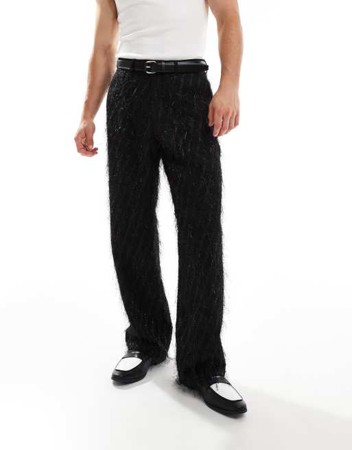 ASOS DESIGN - Pantalon large élégant à détails frangés - Noir