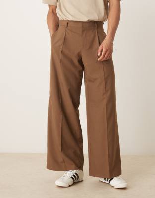 ASOS DESIGN - Pantalon large élégant avec pinces devant - Marron