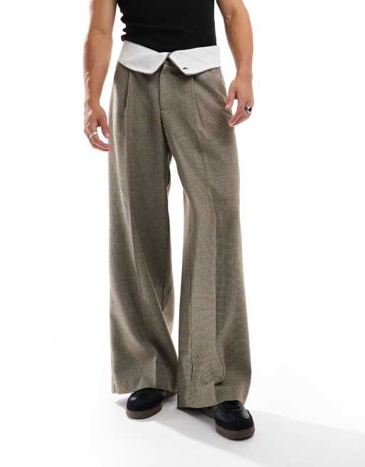 ASOS DESIGN - Pantalon large élégant en tissu micro-texturé avec taille contrastante - Marron