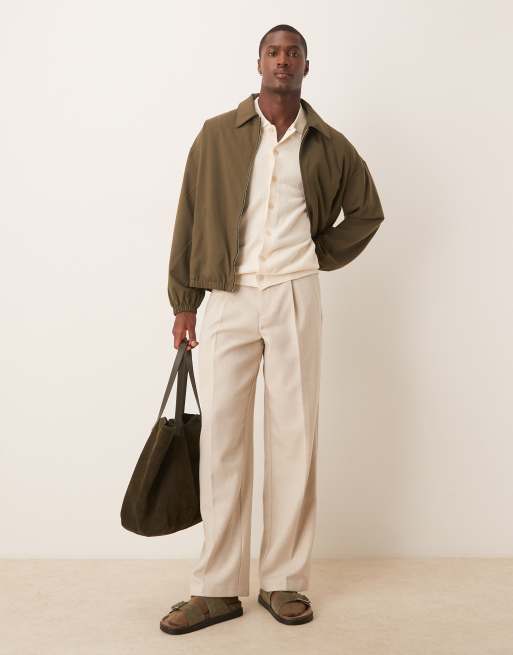 ASOS DESIGN - Pantalon large habillé à pinces en laine mélangée - Taupe