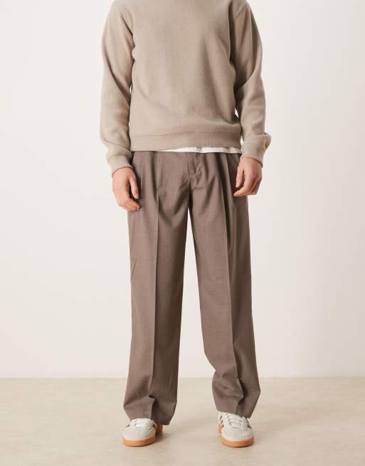 ASOS DESIGN - Pantalon large habillé en flanelle à triples pinces - Marron