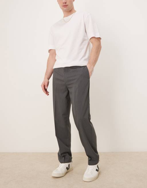 ASOS DESIGN - Pantalon oversize élégant coupe fuselée à fines rayures - Anthracite