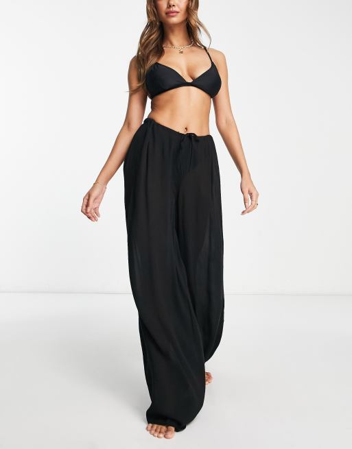 ASOS DESIGN - Pantalon palazzo de plage à cordon - Noir