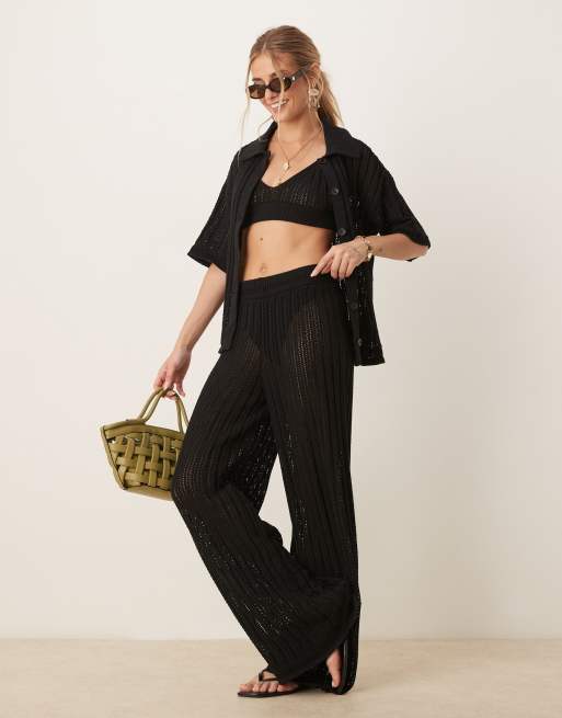 ASOS DESIGN - Pantalon palazzo d'ensemble en maille pointelle - Noir