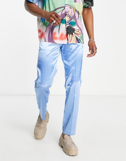 ASOS DESIGN - Pantalon slim habillé en satin - Bleu pastel