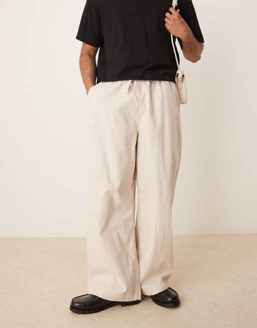 ASOS DESIGN - Pantalon style parachute en lin mélangé - Taupe