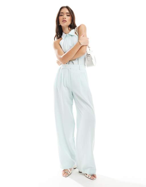 ASOS DESIGN - Pantalon taille basse d'ensemble en lin mélangé - Bleu
