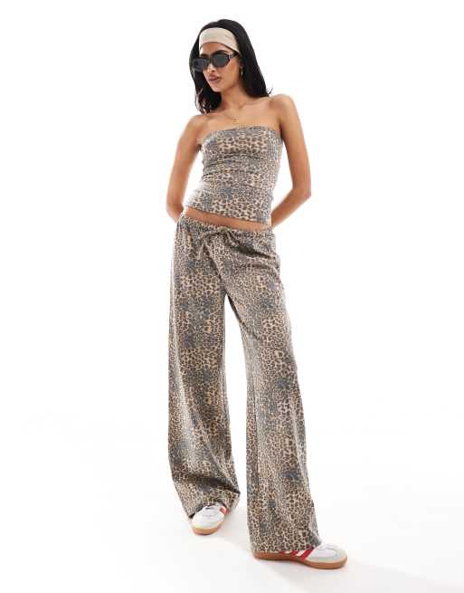 ASOS DESIGN - Pantalon taille basse effet lin à imprimé léopard