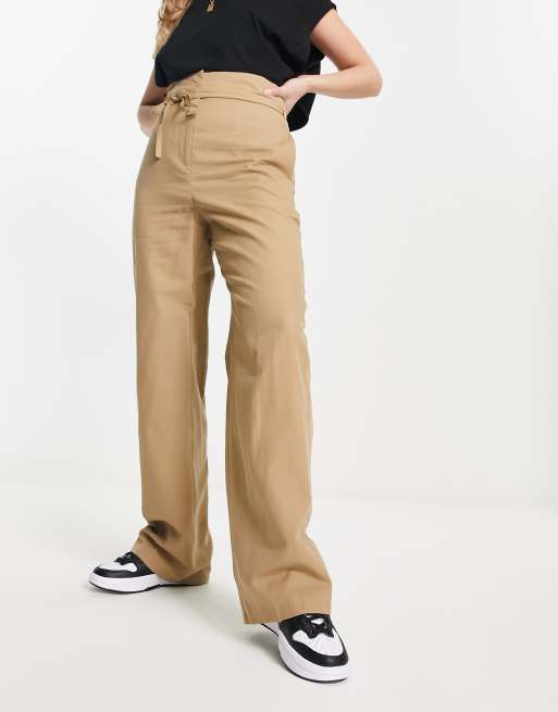 ASOS DESIGN - Pantalon taille haute à double lien - Marron clair