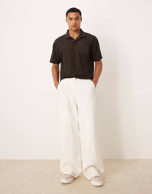 ASOS DESIGN - Pantalon ultra baggy avec détails charpentier - Écru