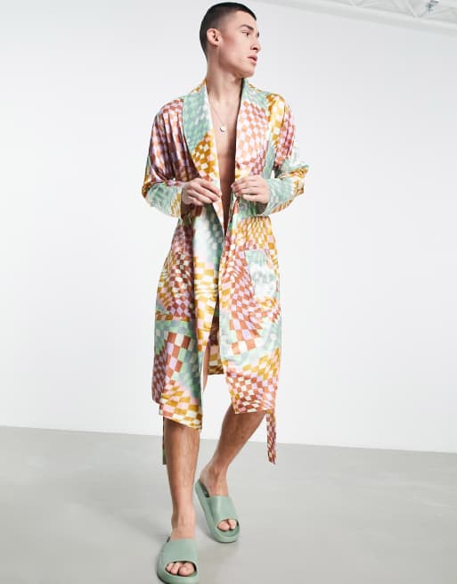 ASOS DESIGN - Peignoir d'ensemble en satin imprimé