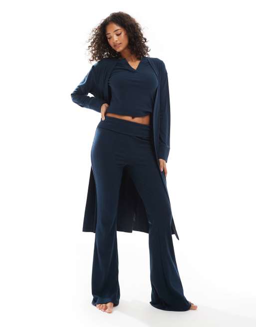 ASOS DESIGN - Peignoir en tissu côtelé - Bleu marine