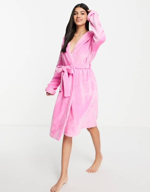 ASOS DESIGN - Peignoir mi-long en polaire très douce - Rose