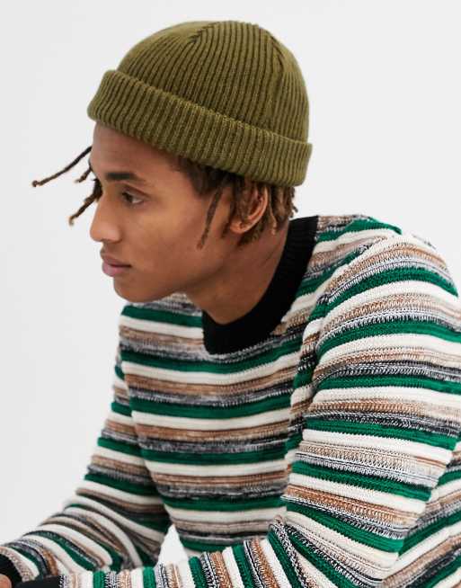 ASOS DESIGN - Petit bonnet torsadé style marin-pêcheur en laine de qualité supérieure - Kaki