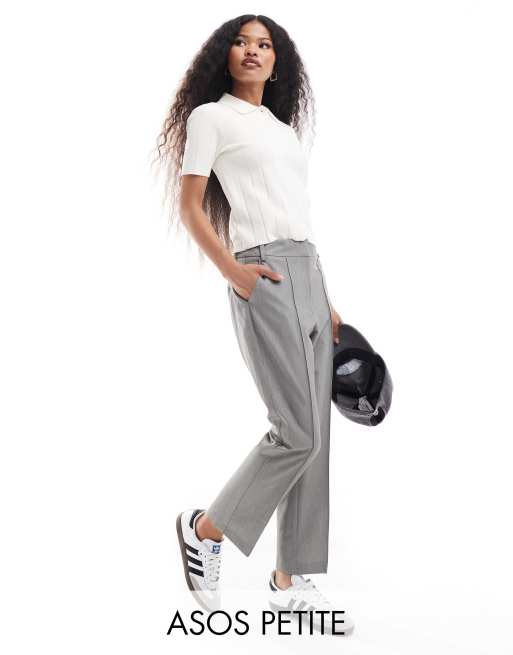 ASOS DESIGN Petite - Pantalon ajusté raccourci à taille haute - Gris
