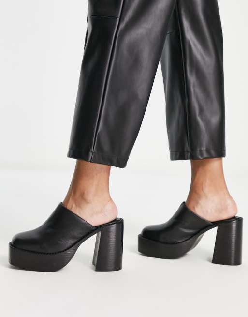ASOS DESIGN - Pierre - Mules en cuir de qualité supérieure à talon chunky - Noir