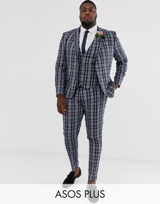 ASOS DESIGN Plus - Mariage - Costume slim à carreaux écossais - Bleu marine