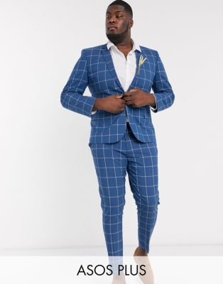 ASOS DESIGN Plus - Mariage - Costume ultra sim à carreaux - Bleu clair