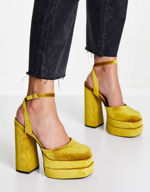 ASOS DESIGN - Pluto - Chaussures en velours à talon avec plateforme - Moutarde