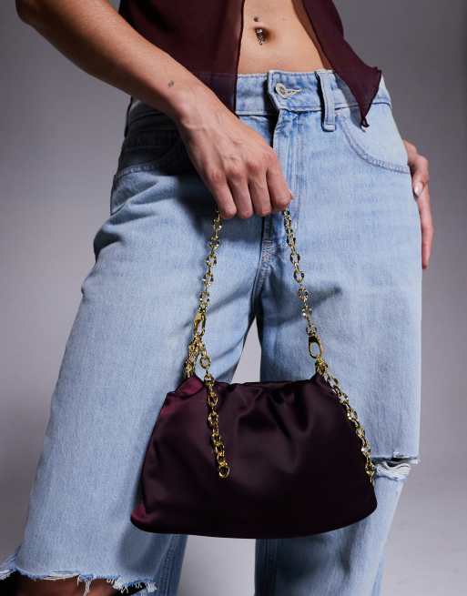ASOS DESIGN - Pochette en satin avec anse chaîne - Prune