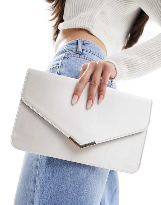 ASOS DESIGN - Pochette en satin avec barre en V - Ivoire