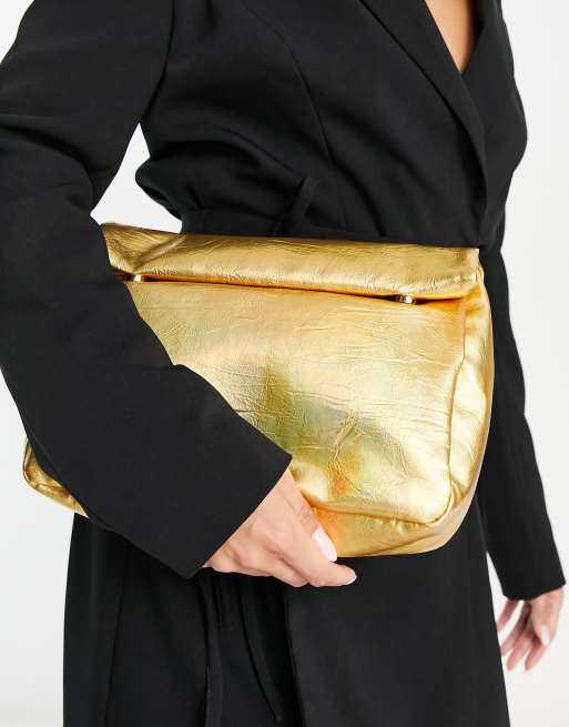 ASOS DESIGN - Pochette irisée roulée sur le haut - Doré