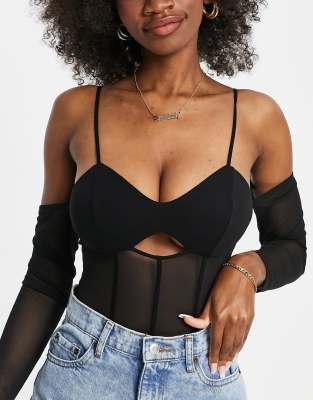 ASOS DESIGN - Poitrines généreuses - Body style brassière avec détail corset et manches en tulle