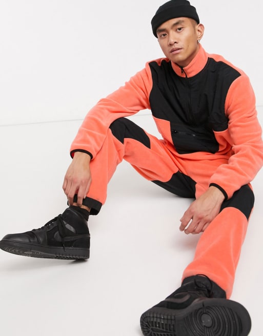 ASOS DESIGN - Polaire avec empiècements en nylon (ensemble) - Corail