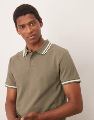 ASOS DESIGN - Polo basique en piqué à liserés blancs - Kaki