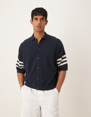 ASOS DESIGN - Polo boutonné oversize en maille airtex - Bleu marine