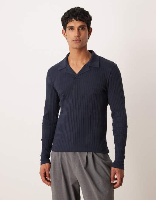 ASOS DESIGN - Polo côtelé ajusté - Bleu marine